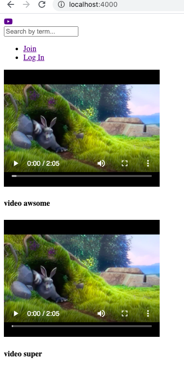 export const videos = [ { id: 3526666, title: "video awsome", description: "This video is something i like", views: 24, videoFile: "https://www.learningcontainer.com/wp-content/uploads/2020/05/sample-mp4-file.mp4", creator: { id: 11515, Name: "YJ", email: "yj@abc.com", }, }, { id: 344444, title: "video super", description: "This video is something i like", views: 24, videoFile: "https://www.learningcontainer.com/wp-content/uploads/2020/05/sample-mp4-file.mp4", creator: { id: 11515, Name: "YJ", email: "yj@abc.com", }, }, { id: 3521111, title: "video nice", description: "This video is something i like", views: 24, videoFile: "https://www.learningcontainer.com/wp-content/uploads/2020/05/sample-mp4-file.mp4", creator: { id: 11515, Name: "YJ", email: "yj@abc.com", }, }, ];videoController.js