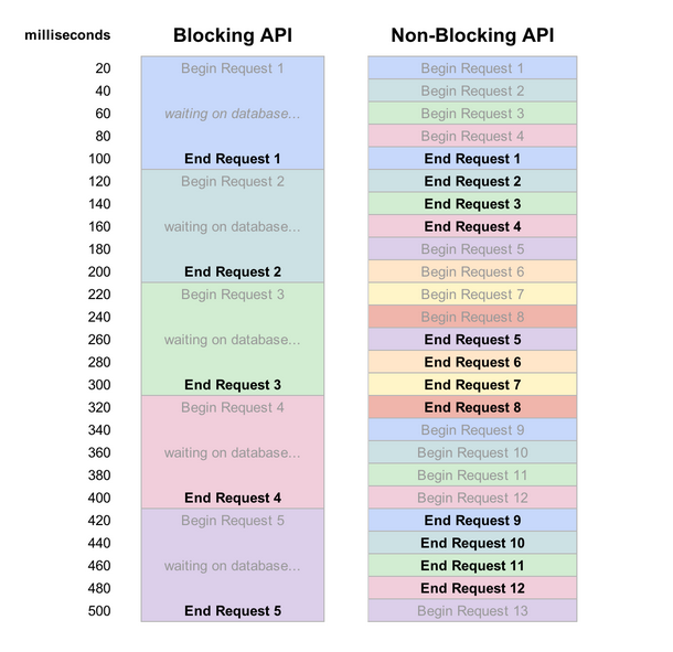 블로킹이란, 이전 작업이 멈추지 않으면 다음 작업을 수행하지 않음을 의미